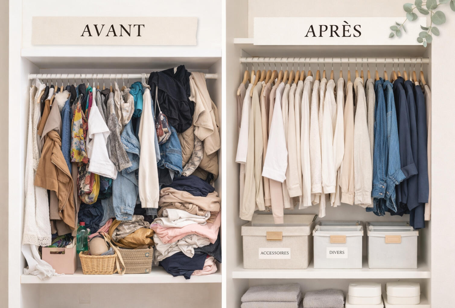 - Désencombrement des pièces ou espaces choisi Dressing, cuisine, chambre des enfants, buanderie, placards, cellier … tout est possible !